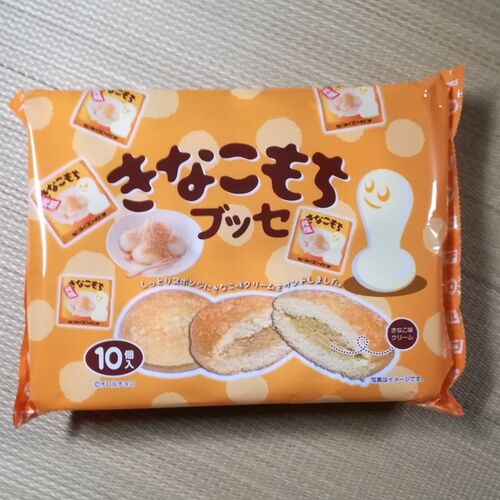 先日「きなこもちブッセ」ってお菓子を買いました。 食べてみたところ、おいしかったです。きなこ味で。 でも餅は入ってませんでした。