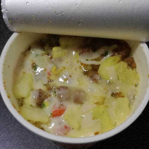 スーパーの店頭でカップヌードルのチーズカレーってのを見かけて、ふと、普通のカレーヌードルにチーズを入れればいいんじゃないの?って思いました。 実際にやってみました。