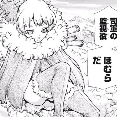 週刊少年ジャンプ Dr.STONE Z=43 「人類最後の6人」 ぽぽんぽんぽん! ルリ「さあさあ、百物語その100、『石神千空』はぁじまるよ~」 千空、コハク、クロム、スイカ「わ~い」 ルリ「地球上の人類が全て石になる、運命の日の前日、千空の父石神百夜はISS国…