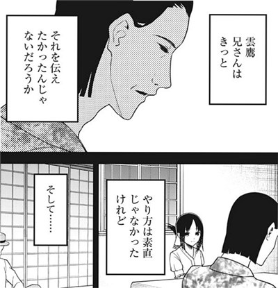かぐやは将来写真家になりたいのか分かりませんが後継者争いに関心が無く、青龍はドカスボンクラのしょうもない人生をこれからも送るのでしょうから、実質は黄光と雲鷹の一騎打ち。