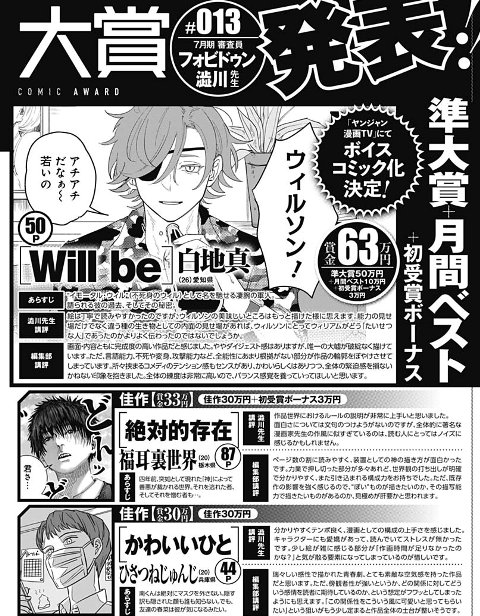 他にこの14巻の大きな特色は巻末おまけまんがでフォビドゥン澁川が去年ヤングジャンプ新人漫画大賞の審査員を務めたときの心境を語ってるところです。